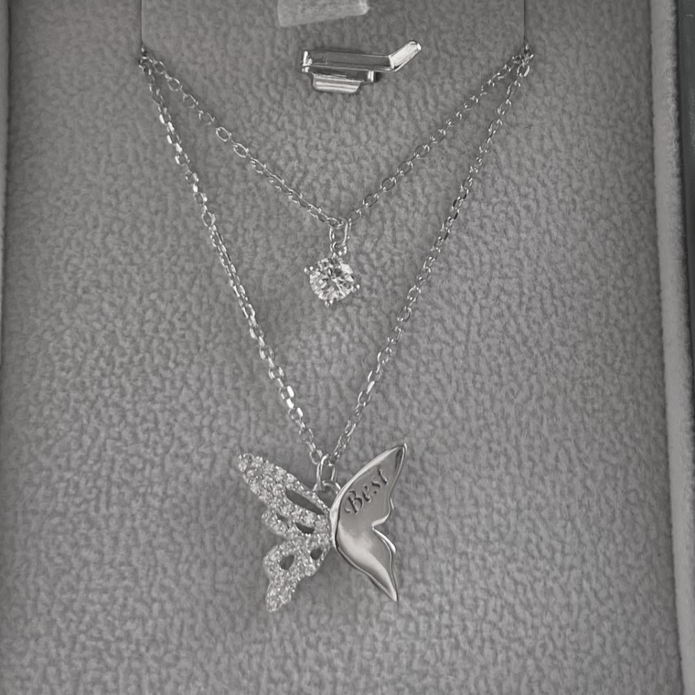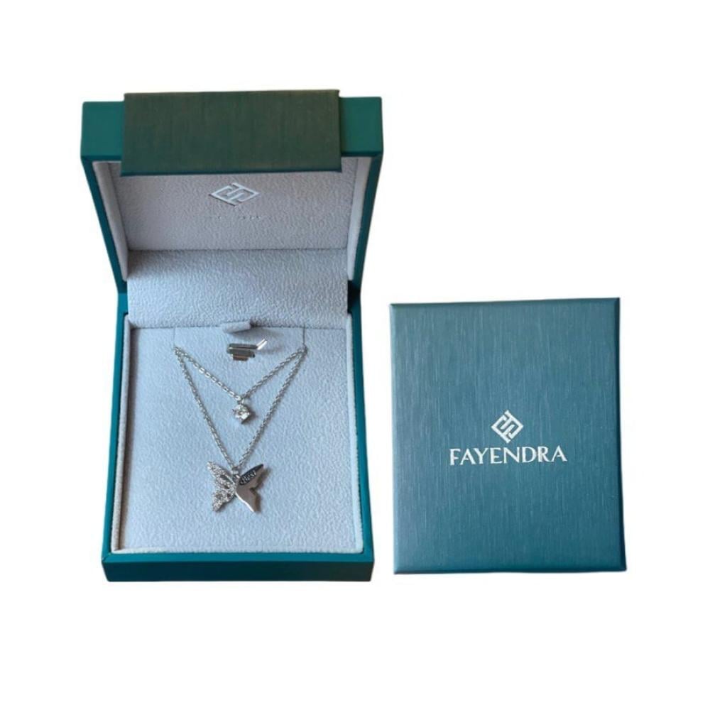 عقد من الفضة الخالصة عيار 925 مطلي روديوم مرصع فص ابيض